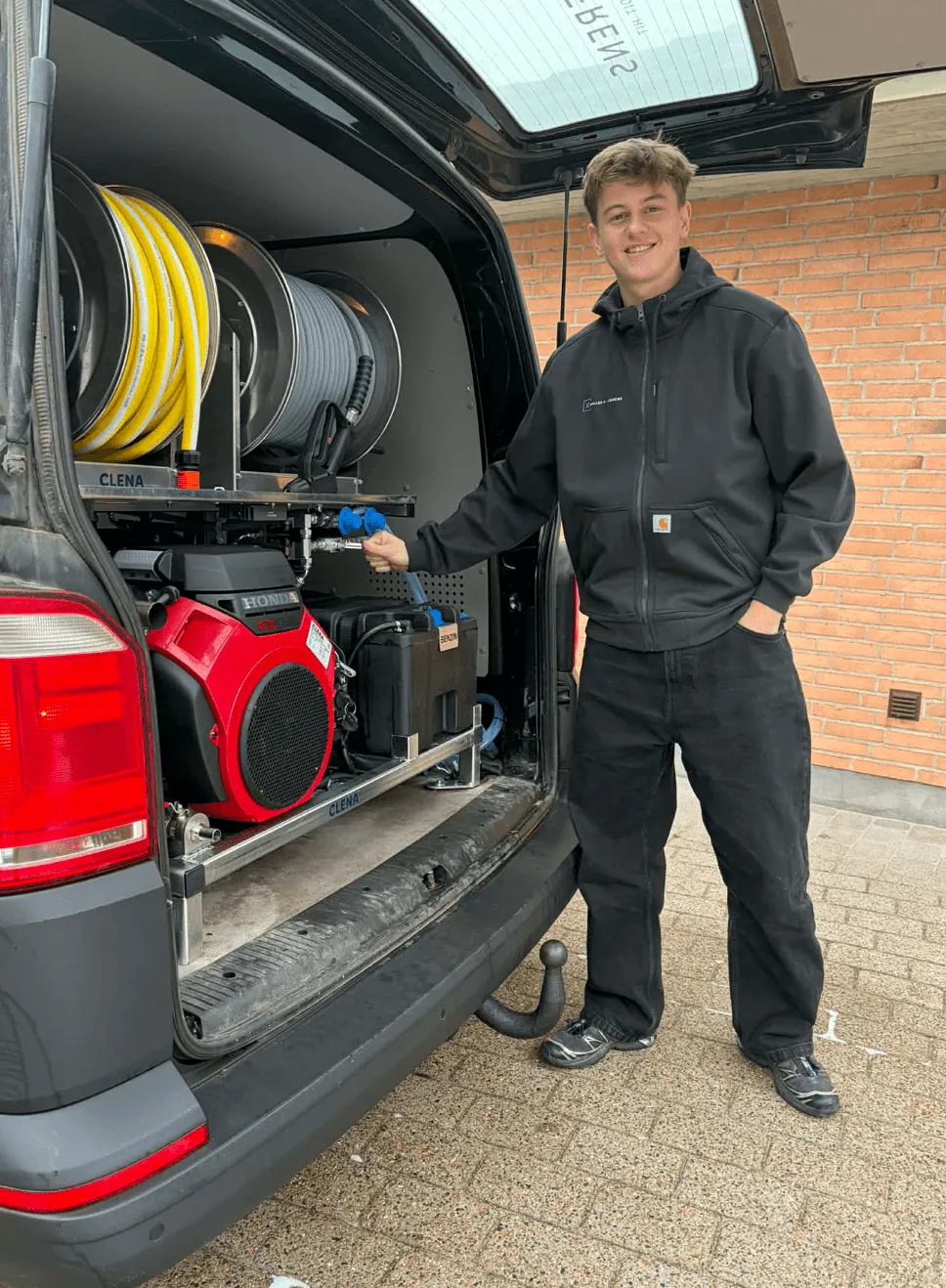 Jeg startede Kalles Algerens, fordi jeg så et behov for ordentlig udendørs rengøring i området. For mange bruger en billig højtryksrenser med koldt vand, som kun fjerner det yderste lag snavs. Med professionelt udstyr og varmt vand under tryk kommer vi ned i dybden og fjerner alger og snavs fra bunden — og resultatet holder markant længere.